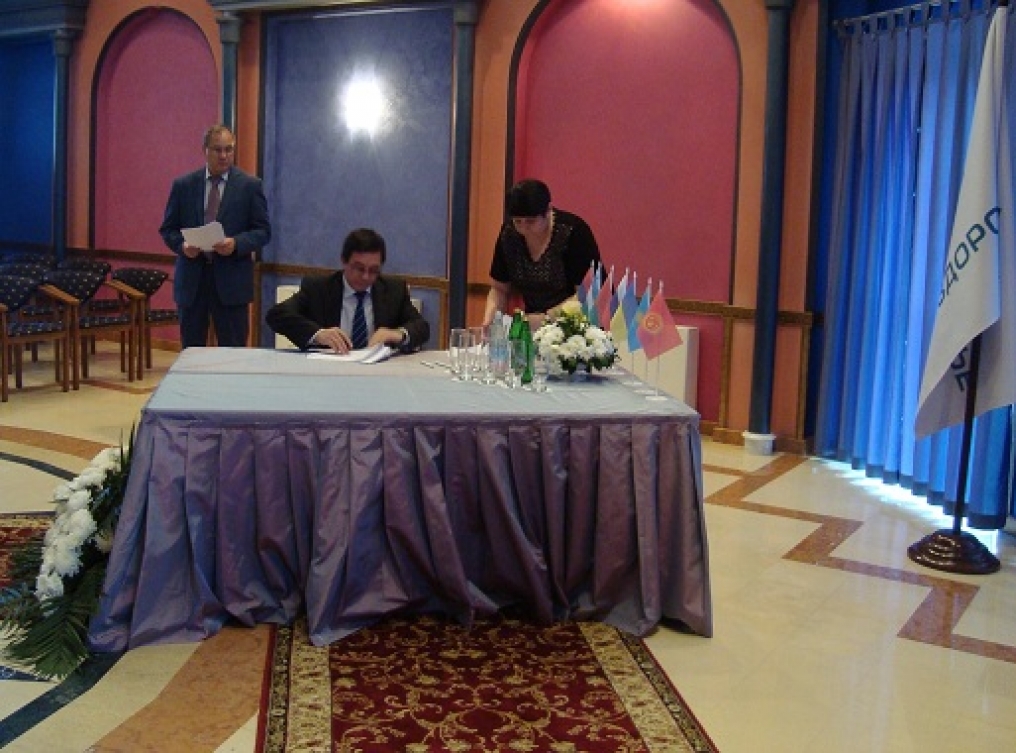 Альберт Мухтарович Аскаров – директор департамента госсанэпиднадзора на транспорте Комитета Министерства здравоохранения Республики Казахстан, главный государственный санитарный врач на транспорте Республики Казахстан. Подписание протокола тридцать третьего заседания Комиссии по взаимодействию железнодорожных администраций государств-участников Содружества в области здравоохранения.
