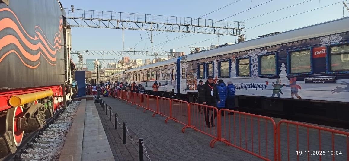 19 ноября 2025 года праздничный Поезд Деда Мороза отправился из Владивостока в дальнее путешествие по городам Дальнего Востока и Сибири. Перед началом маршрута специалисты Дальневосточного территориального отдела Управления Роспотребнадзора по железнодорожному транспорту провели комплекс мероприятий по обеспечению санитарно-эпидемиологической безопасности проекта.