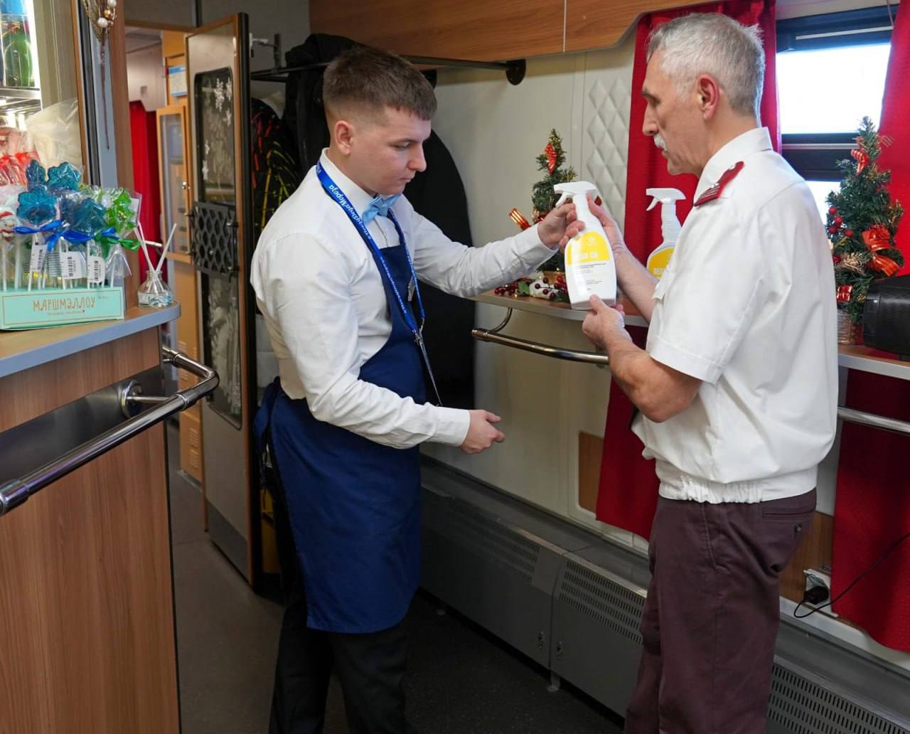 Особое внимание уделено соблюдению обязательных требований в вагонах-ресторанах и при организации питания для посетителей в пути следования, а также при организации мест торговли. Проверена готовность персонала к проведению противоэпидемических мероприятий при выявлении пассажира с признаками инфекционного заболевания.